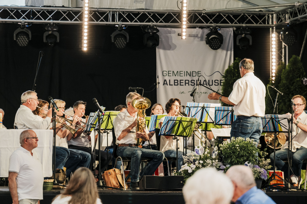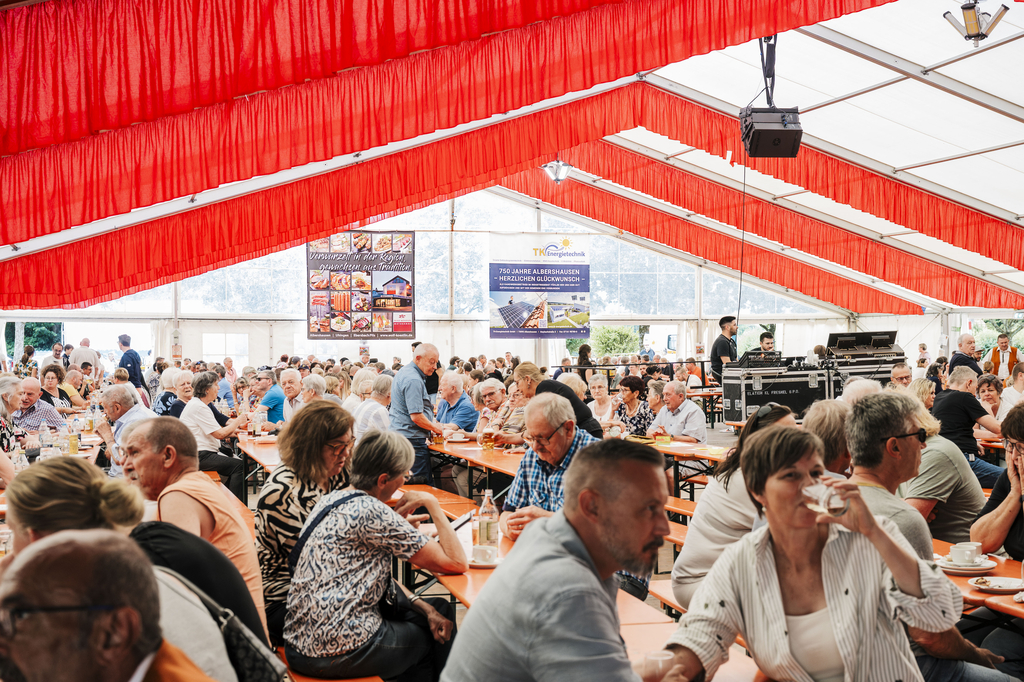 Ab 18.00 Uhr konnten die Bürgerinnen und Bürger sich mit einem Glas Sekt auf die bevorstehende Jubiläumsveranstaltung einstimmen. Herr Bürgermeister Jochen Bidlingmaier eröffnete den Festakt und gab das Wort weiter an Ministerin Nicole Razavi. Landrat Edgar Wolff überreichte nach seinen Grußworten eine Roteiche, die dieses Jahr zum Baum des Jahres ausgezeichnet wurde. Kreisarchivar Dr. Lang machte einen großen Sprung in die Vergangenheit von Albershausen. Eine sehr beeindruckende Bilderreise für alle Teilnehmerinnen und Teilnehmer. Der Musikverein sorgte für die musikalische Umrahmung. Ein absolutes Highlight war der Auftritt der Sportakrobaten des TSGV. Phantastische Darbietungen sorgten für einen tobenden Applaus. Zum Abschluss fand das Interview mit Herrn Bürgermeister Bidlingmaier mit dem „jüngsten“ und dem „ältesten“ Teilnehmer statt. Nach diesem Auftakt luden die LandFrauen mit einem vielseitigen Buffett zu einer Stärkung ein. Frau Smarsly sorgte mit einer ansprechenden Getränkeauswahl dafür, dass kein Gast durstig blieb. Eigens für den Festakt haben die Mitglieder des Fotoclubs das Fotoarchiv der Gemeinde durchstöbert und eine tolle Zusammenstellung erstellt, die an diesem Abend uraufgeführt wurde. Den kurzweiligen Film können Sie auf dem Youtube-Kanal der Gemeinde einsehen.